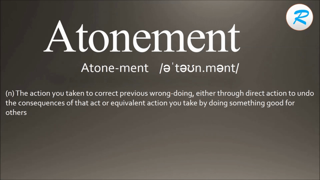 Atonement is a hard concept to define for readers. It is a form of ritual reconciliation, which is restoring a relationship that has been damaged. Theologically, atonement means bringing reconciliation between people and God.