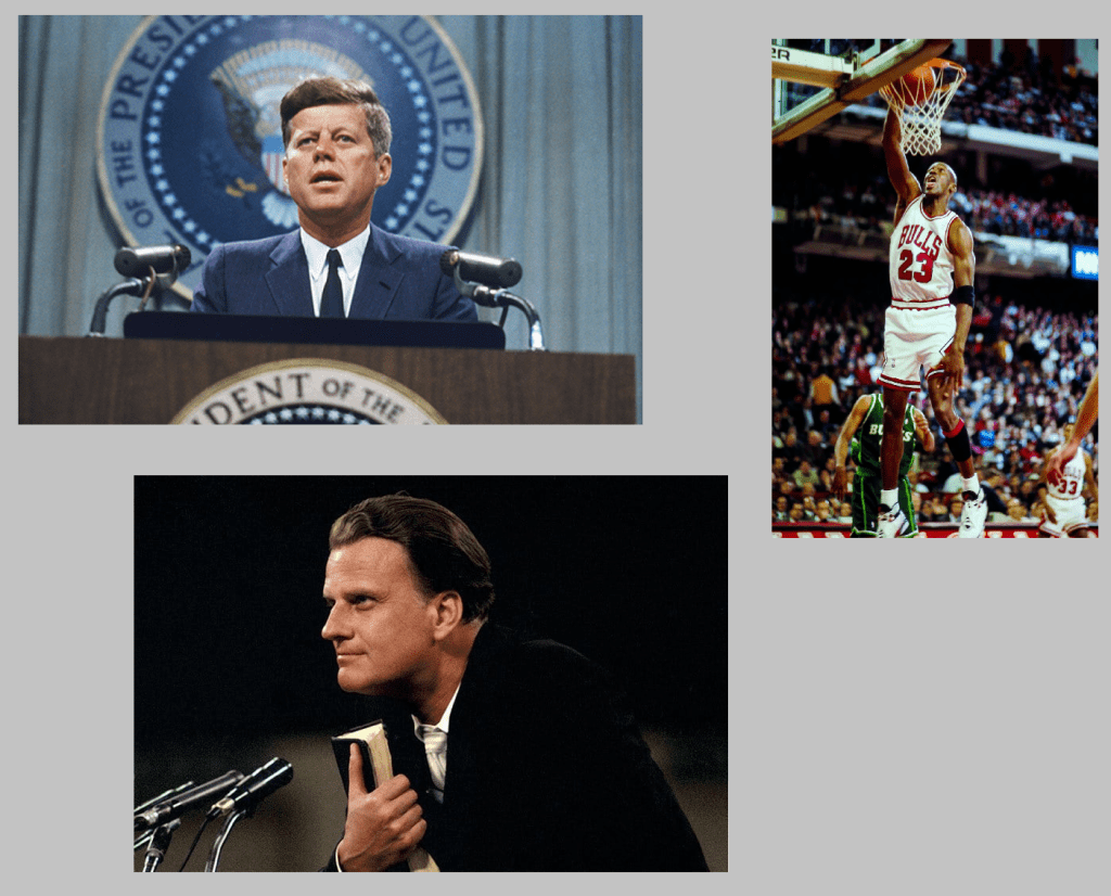 John F. Kennedy, Michael Jordan, Billy Graham